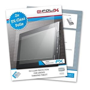 2 x FX-Clear-Protection ultra-clear screen protector tailored forLenovo ThinkPad TabletUltra-clear and hard-coated!The FX-CLEAR-PROTECTION foil is a transparent, high-tech protective foil for high-resolution screens.This innovative screen-protection foil is characterised by crystal-clear transparency and excellent resistance to scratches (resists 4H pencil hardness at 500 g writing pressure). It can be very easily attached and removed at any time without leaving a residue, is highly transparent and adheres snugly to your screen without affecting its operation.